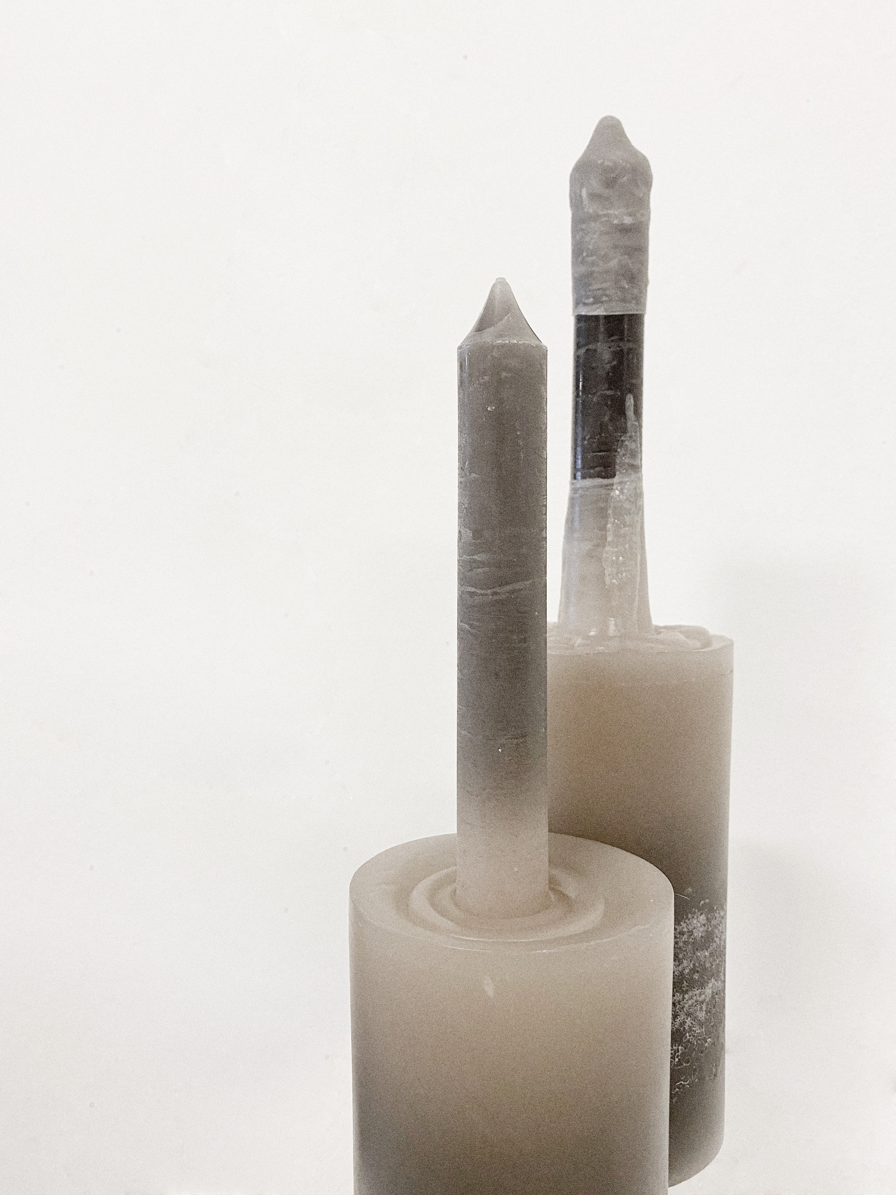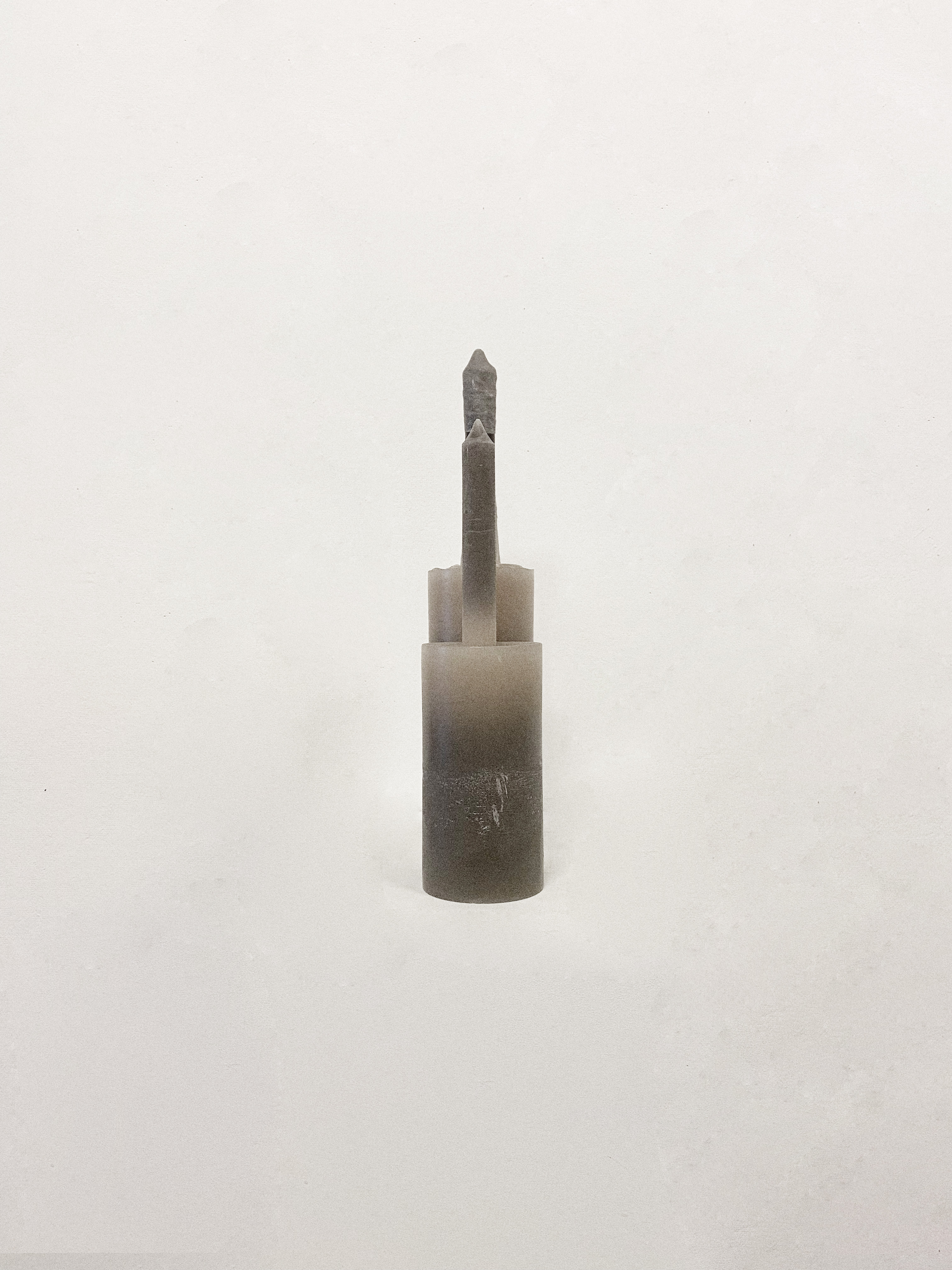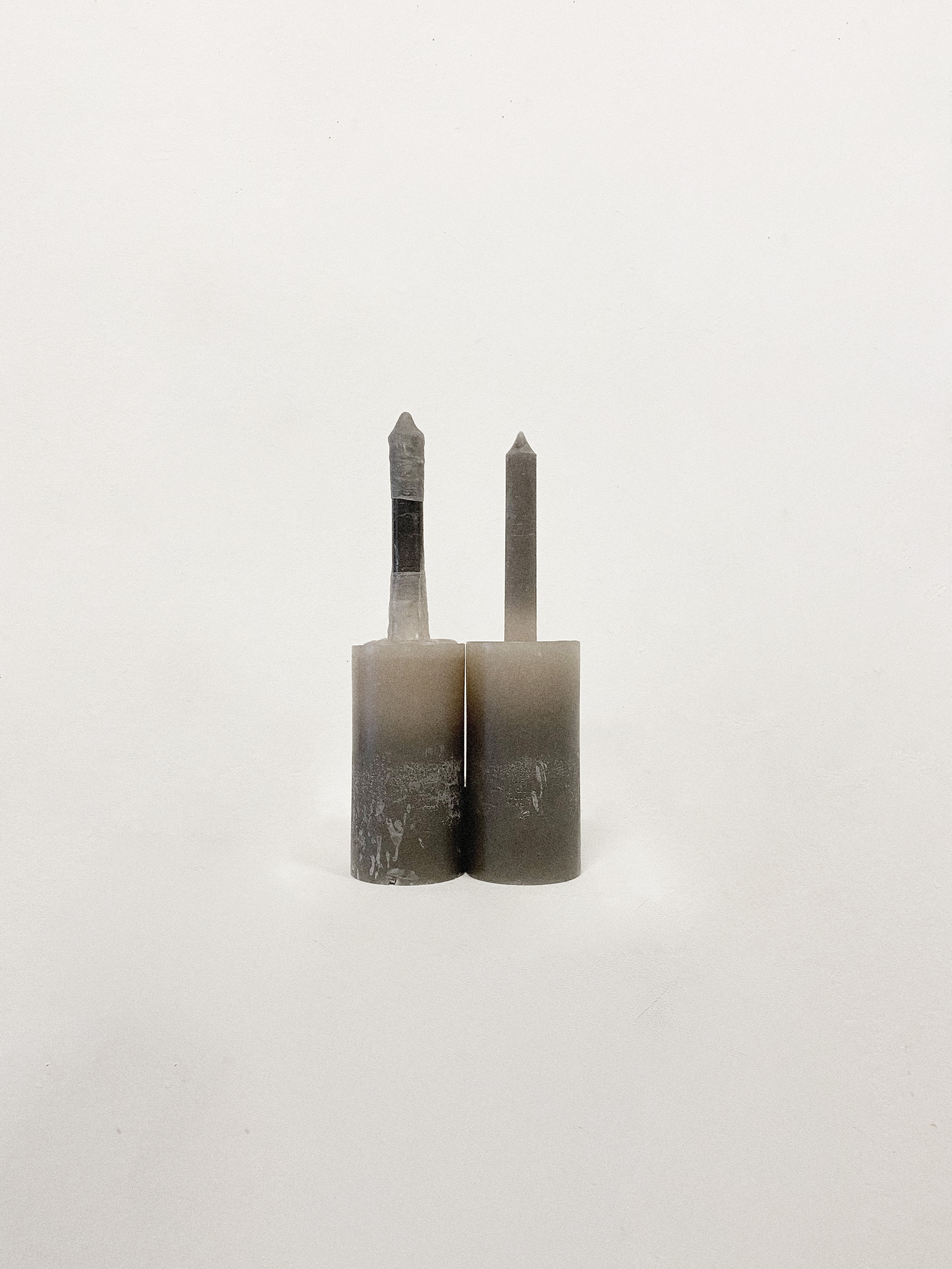 Wax, UV theraml pigment, wood, foam, paper, cable tie, audio recorder, amplifier, contact microphone, wire.